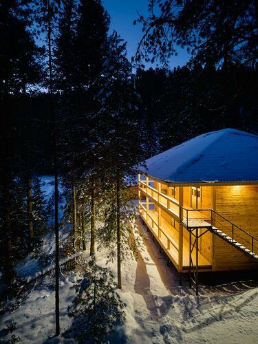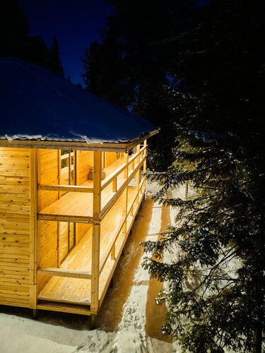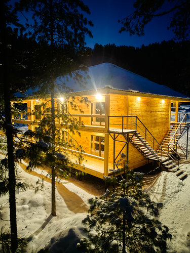 Баня классная, необычная, но зимой мне лично не хватало предбанника для отдыха от парения, на улице в -10 особо не отдохнешь, но зато был свежий снег)