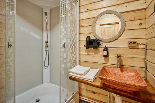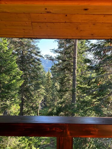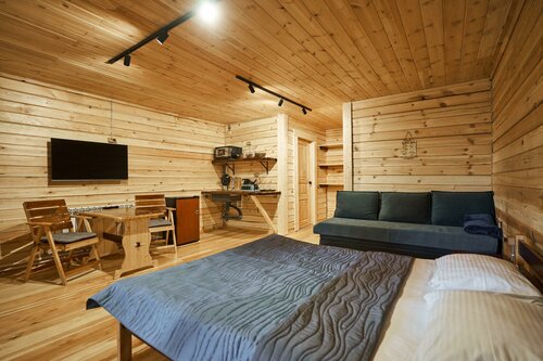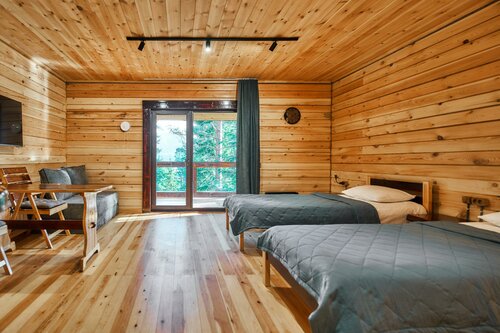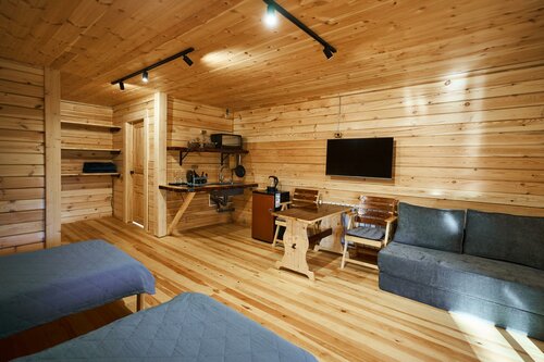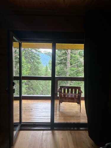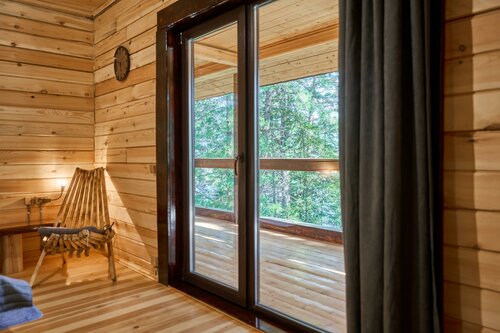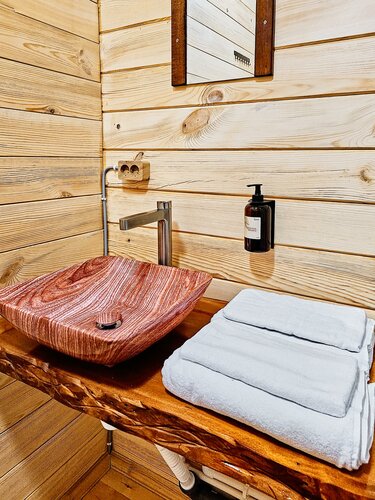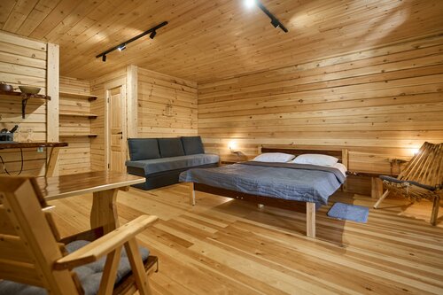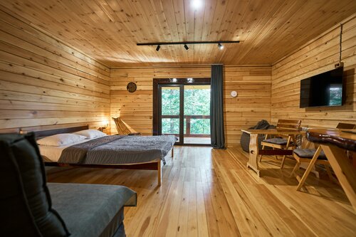 В первую осередь поразил вид с терассы - густая зелень - пихты, кедр, запевают птички, стоит чудесный хвойный аромат. Домик полностью из кедра, оборудован деревянной мебелью. Удобная двуспальная кровать. Так же прилагается подробная рекомендация по отдыху. Не слышно шума с дороги. В этом месте наслаждаешься тишиной и уединением. Благодарим вас за это волшебное место!